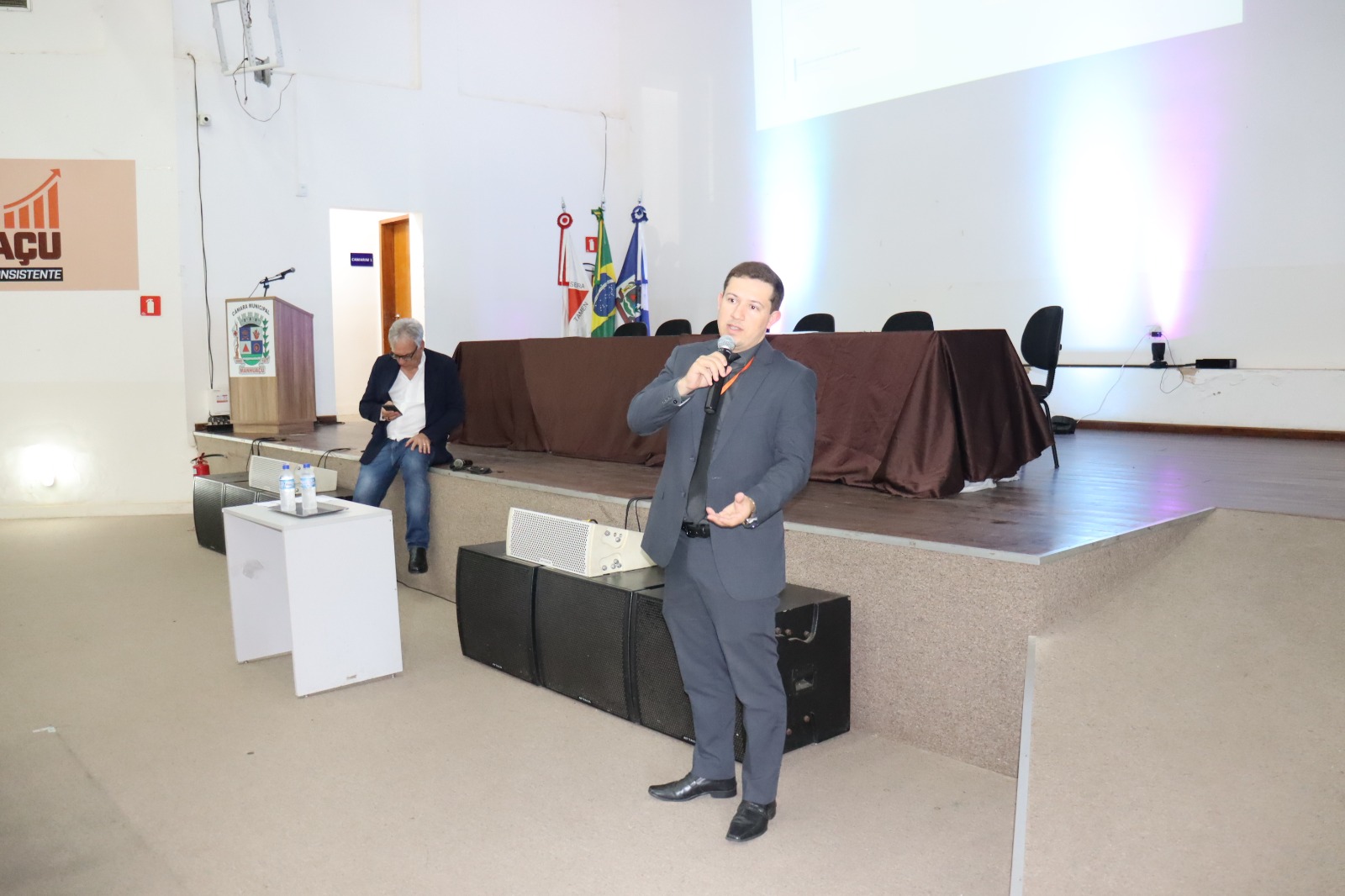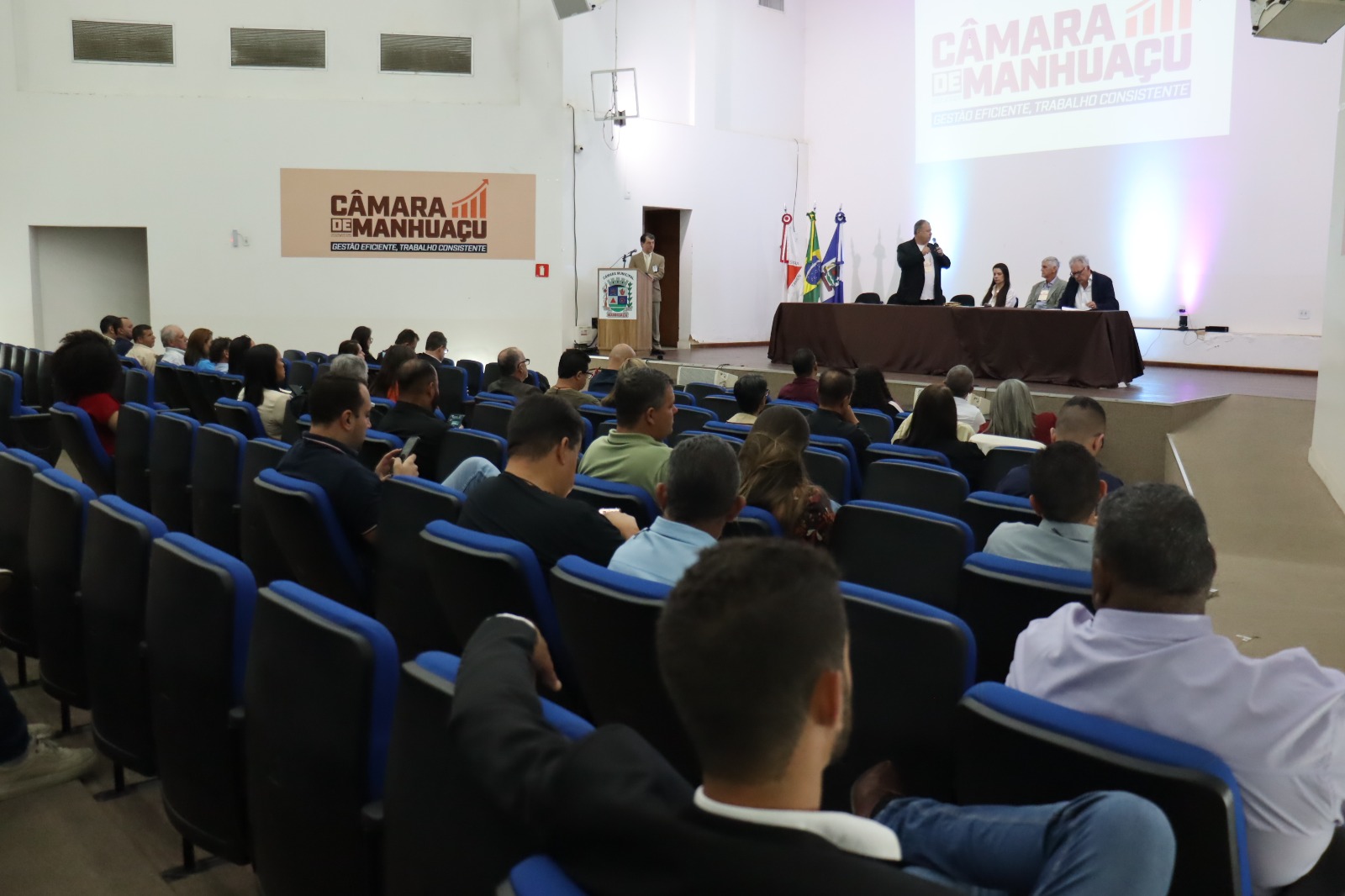 O diretor geral da câmara, Senisi Rocha, abriu o evento dando as boas vindas aos participantes. Para compor a mesa, ele chamou a presidente do legislativo, vereadora Rose Mary, o vice-prefeito de Manhuaçu, Nailton Heringer, o professor Guilherme e o assessor do deputado federal Mário Heringer, Márcio Gerard.