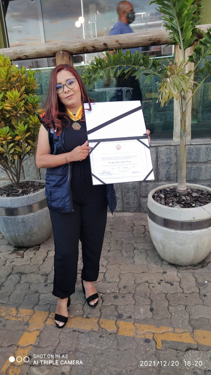A Coordenadora Municipal de Proteção e Defesa Civil – COMPDEC de Caparaó, servidora Hemyllay Mendes Alves Raposo, foi condecorada com a Medalha do Mérito da Defesa Civil, em Belo Horizonte.
