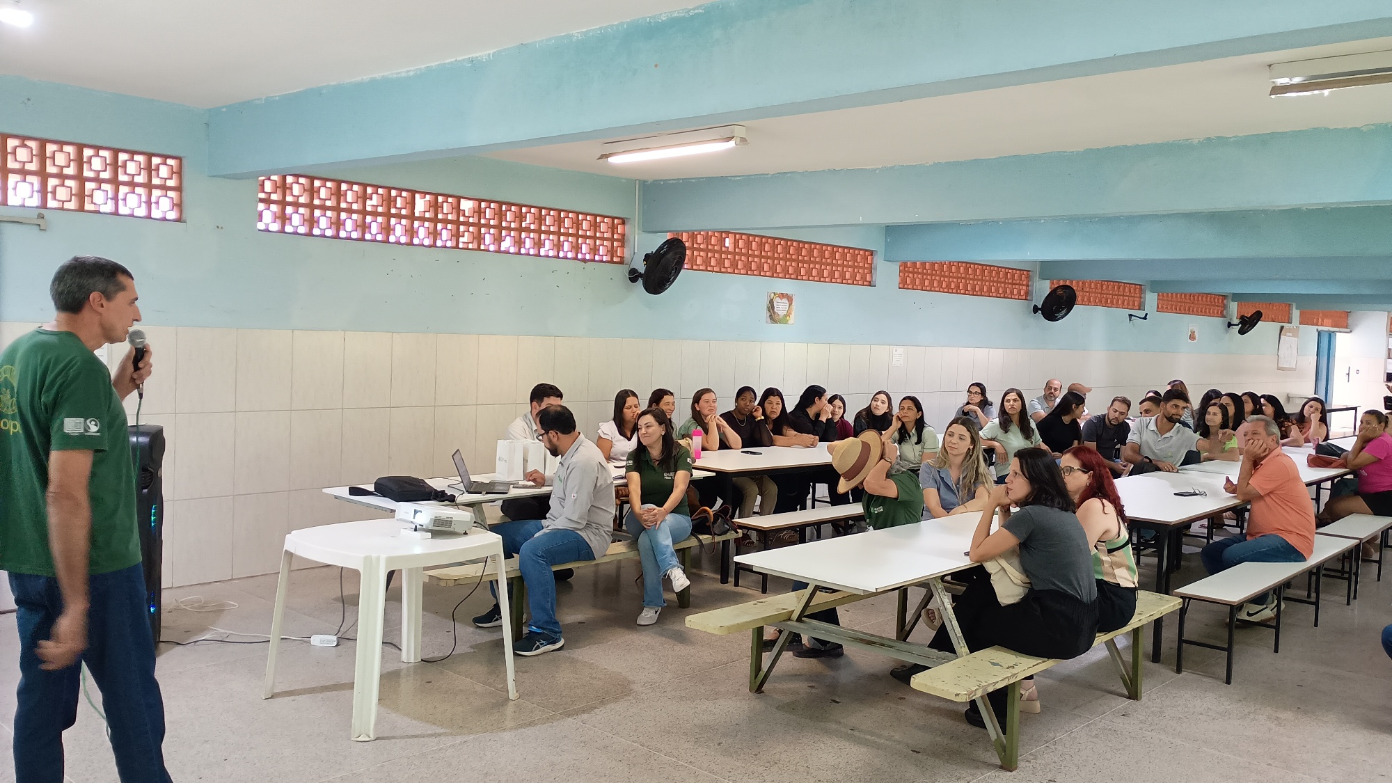 Organizado na EE Maria de Lucca Pinto Coelho, o evento contou com a participação de representantes de instituições ligadas à agricultura familiar e à assistência técnica, além dos educadores, evidenciando as ações voltadas à produção e ao fornecimento de alimentos destinados à merenda escolar.