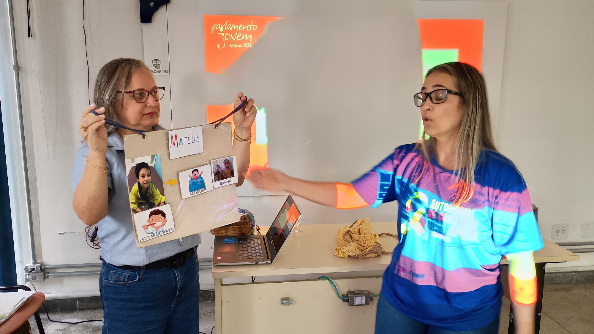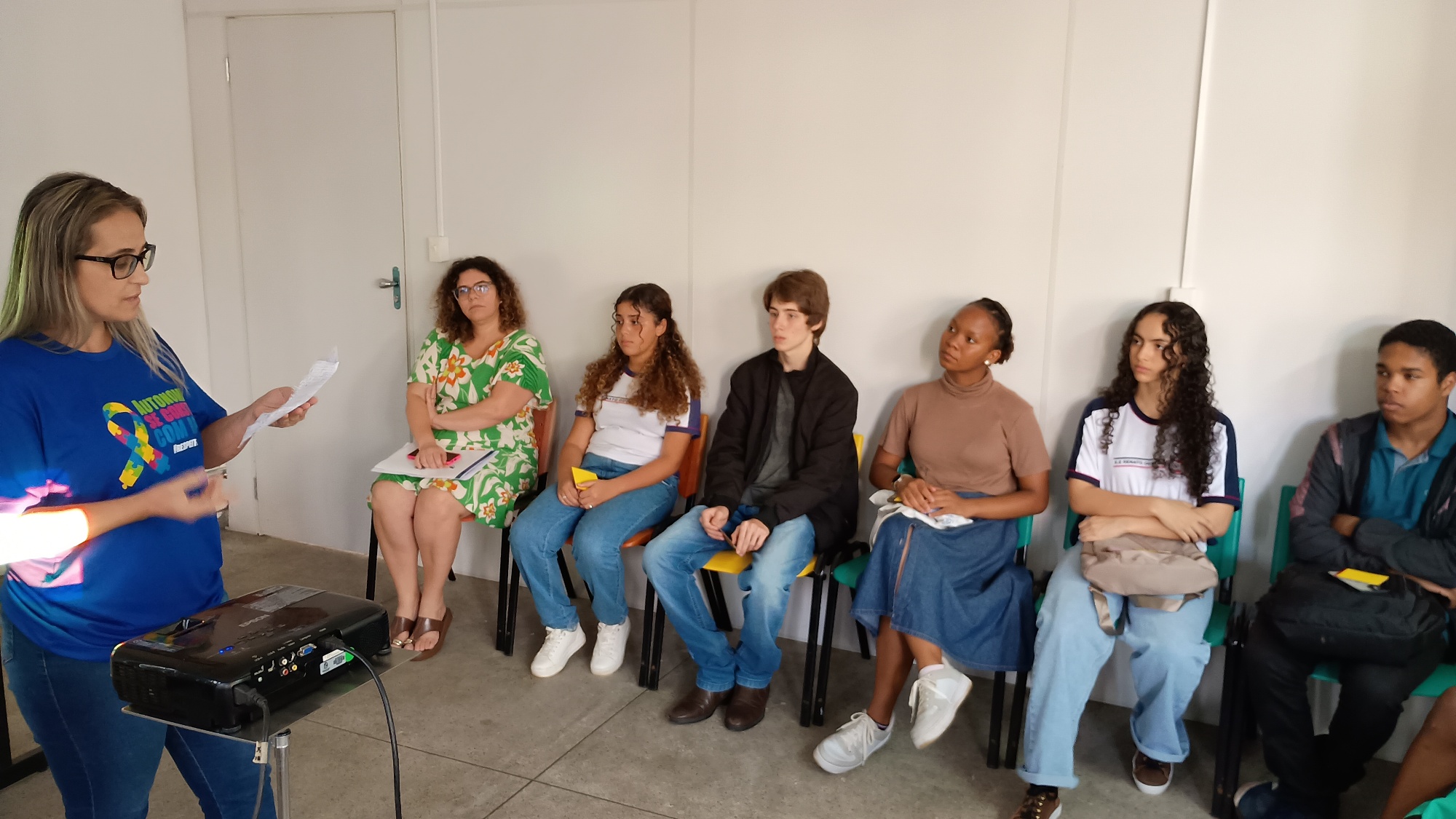A palestra foi apresentada pela Monitora Neiva Melo, especialista da SRE (Superintendência Regional de Ensino), além do depoimento da mãe de aluno com espectro autista, Érika Gomes Faria.
