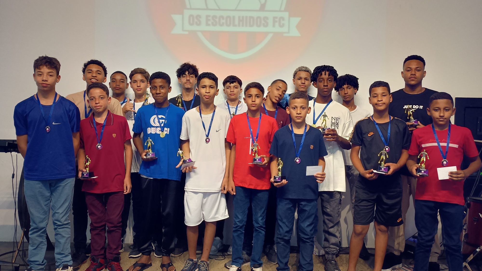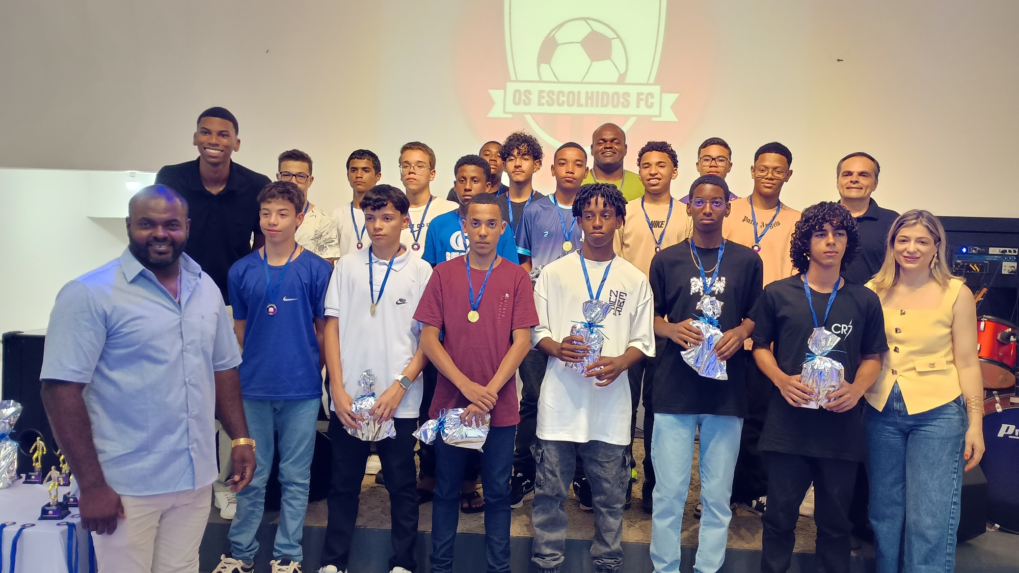 A cerimônia contou ainda com a premiação dos destaques esportivos da temporada, incluindo craques de jogo, artilheiros, goleiros, assistências e a classificação geral por pontos corridos em cada categoria. Ao final, foram anunciadas informações sobre o início da temporada 2026, previsto para janeiro, e reforçado o convite para que a comunidade acompanhe as ações do projeto por meio das redes sociais (@osescolhidosfcoficial).